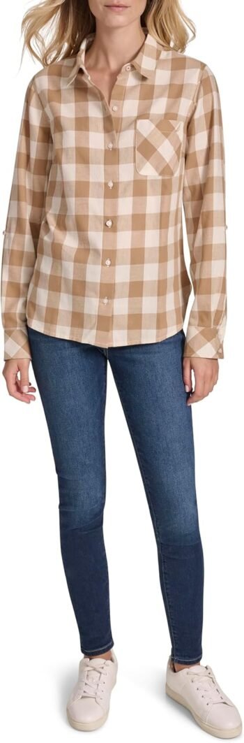 - Features: Long , button up, collared, roll tab, shirt, Roll Tab Button Up Shirt